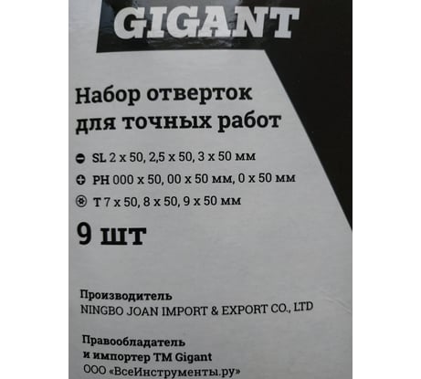 Отзывы о наборе отверток для точных работ 9 штук Gigant SHT310