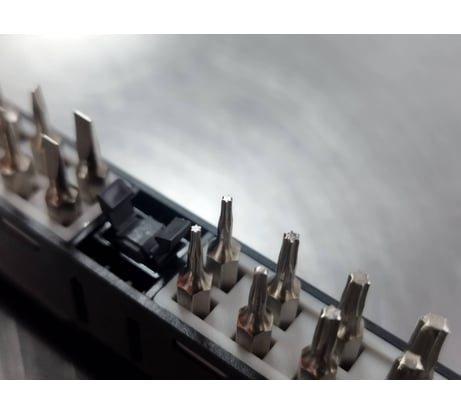 - Биты: SL1 , SL1.5, SL2, SL2.5, SL3, PH0, PH1, PH00, PH000, PZ0, PZ1, PZ00, T4, T5, T6, T7, T8, T9, T10, T15, H1.5, H2.0, PL0.8, PL1.2