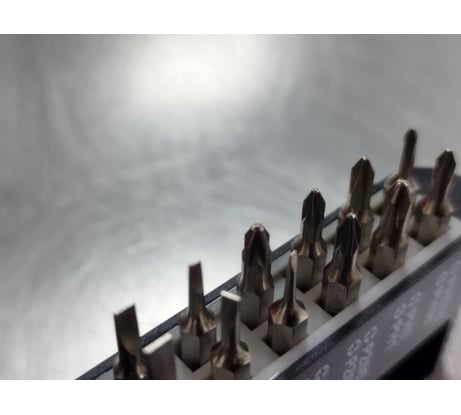 Биты выполнены из качественной японской стали S2, обладающей высокой прочностью к механическим повреждениям. Твердость бит: 57-61 HRC.