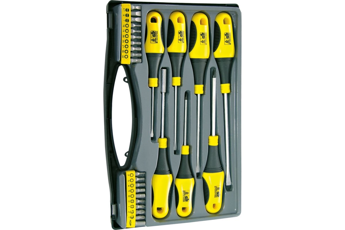 - Набор отверток и бит MEGA 27 предметов пластиковый кейс 10385 используются в быту и в профессиональной деятельности для работы с широким спектром винтов и шурупов