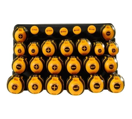 давно хотел подобный набор. производителя знаю давно, пользуюсь такими отвёртками постоянно. сплав хороший, а цена демократичная. но этот набор удивил. сразу не всмотрелся в "разнообразие" наконечников. по итогу куча PH2 и SL6.5 разной длины. и ни одного PZ2! Серьёзно?! при том что столько длин не сдалось. расставлены в подставке по какой-то своей логике и нормально их не расставить - отверстия разные по диаметру. но за такую цену пусть будут, блистер всё равно обратно не склеить)