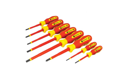 Набор диэлектрических отверток 8 предметов, тип NSB171VDE-080, NORGAU 067122080 предназначен для проведения ремонтных, монтажных и демонтажных работ под напряжением до 1000V. Инструменты имеют стержень из прочной стали SVCM+, устойчивый к высоким нагрузкам. Жало отверток магнитное позволяет удерживать мелкий крепеж.
