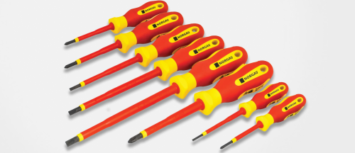 Набор диэлектрических отверток 8 предметов, тип NSB171VDE-080, NORGAU 067122080 предназначен для проведения ремонтных, монтажных и демонтажных работ под напряжением до 1000V. Инструменты имеют стержень из прочной стали SVCM+, устойчивый к высоким нагрузкам. Жало отверток магнитное позволяет удерживать мелкий крепеж.
