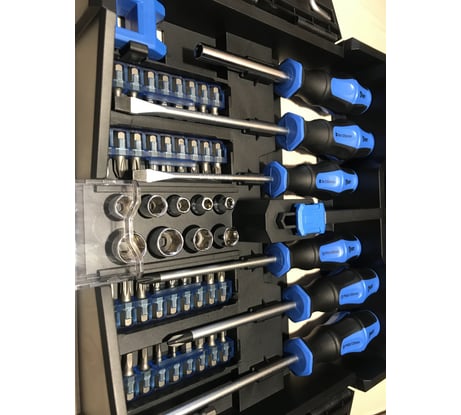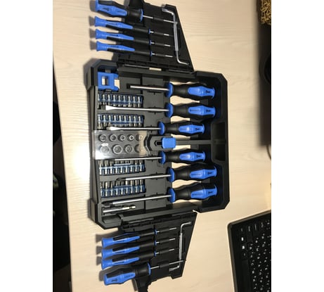 Много головок, бит, и просто хороший набор. Как подарок человеку с руками из плеч или просто положить в машину "на всякий пожарный" отличный выбор. Даже просто чтоб в доме находился, чтоб что-то подкрутить-открутить, варианта лучше не найти
