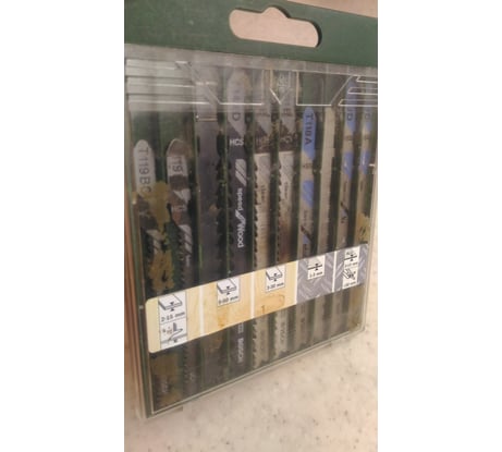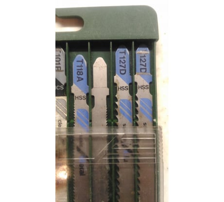Пилки острые, хорошее качество стали. Очень легко сделать ровный пил, в сторону не уводит, отлично пилят и дерево, и металл. Удобная упаковка для хранения, назначение каждой пилки прописано — со временем краска стирается, но если возвращать каждую на своё место, то это очень удобно. Заточка отличная, а износ минимальный. С быстрым зажимом лобзика не возникает инцидентов, сидят как влитые. Очень качественные пилки.