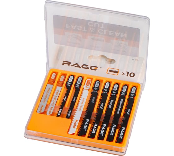 Набор пилок RAGE для лобзика универсальный по дереву металлу и ламинату 10 шт 552201