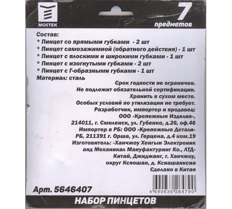 Отзывы о наборе пинцетов MOSTEK (7 предметов) 5646407