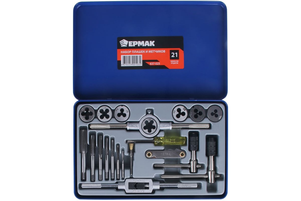 Набор плашек и метчиков ЕРМАК 21 шт. 637-025