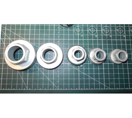 Набор включает в себя 5 плашкодержателей для работы с плашками 20, 25, 30, 38 и 45 мм.