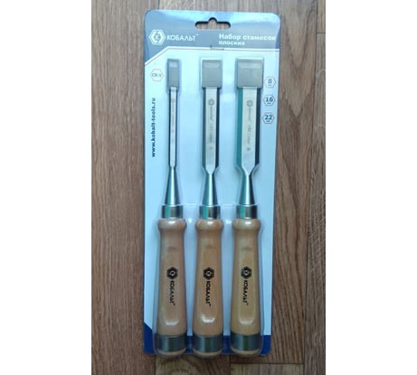 Набор плоских стамесок: 8, 16, 22мм, длина 140мм, CR-V, деревянные рукоятки, 3шт., КОБАЛЬТ 245-862, товар соответствует заявленным характеристикам.
