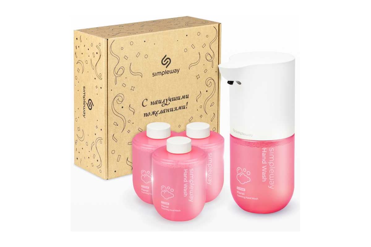 Набор подарочный SimpleWay сенсорный дозатор для жидкого мыла цвет розовый SW98953