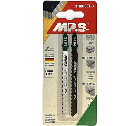MPS Набор полотен для лобзика для резки древесины, 2 шт., MPS 3100-SET-3