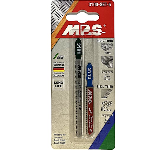 MPS Набор полотен для лобзика для резки древесины и металла, 2 шт., MPS 3100-SET-5