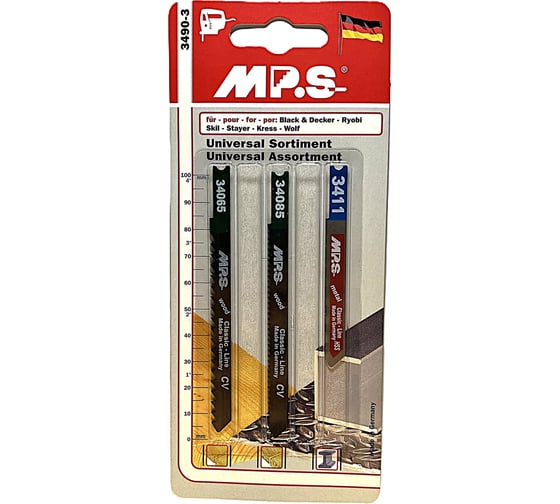 MPS Набор полотен для лобзика по дереву и металлу с хвостовиком U, 3 шт., MPS 3490-3.