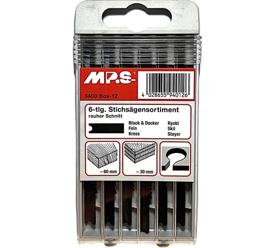 MPS Набор полотен для лобзика по дереву с хвостовиком U, 6 шт., MPS 3400-BOX-12.