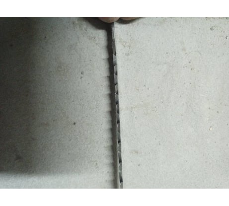 Пилки работают неплохо. Ламинация сильно не обдирают. Часть пилок по дереву гнется легко, а часть держится. Обработка зубьев плохая. Очень много дефектов, но они уверенно пилят. На фото к сожалению плохо передается, что режущая кромка местами замята. Коробочка отвратительная. На полотнах нет маркировки для какого материала использовать.