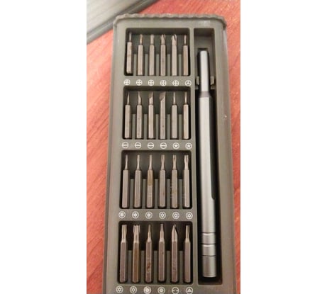 Есть все нужные биты, обычно нету Т10 в наборах, зато куча других бесполезных… тут все есть. Кончик рукоятки, который в сторону ладони, крутится, поэтому можно надавливать и ручка не будет натирать ладонь. Магниты очень хорошие, все удобно садится. Качество металла оценить не смогу, да и для такого размера винтов я думаю любого кроме сыромятины будет достаточно.