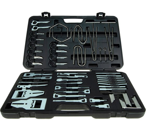 Профессиональный набор LG-14981 для демонтажа мультимедийного и аудио оборудования из торпедо автомобиля. Пятьдесят два съемника расположены в удобном и долговечном пластиковом кейсе с защелками. Каждый инструмент находится на своем уникальном месте. Возле посадочного места съемника в кейсе указаны марки автомобилей, у которых данным съемником демонтируется штатное головное устройство (штатная магнитола) или марка универсальной магнитолы, которая может устанавливаться в разные автомобили со стандартными посадочными местами DIN.Подходит для работ как с небольшими магнитолами 1DIN, так и с магнитолами большего размера 2DIN и штатными головными устройствами. Все, что требуется для быстрого и аккуратного извлечения аудиосистемы, это установить съемники в соответствующие пазы на фронтальной части устройства (как указано в инструкции и на обороте упаковки), нажать на них до упора или до щелчка и потянуть на себя съемники уже вместе с аудиосистемой. Набор значительно ускорит работы и поможет сохранить дорогостоящее оборудование в хорошем состоянии.