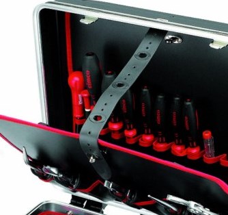 Несколько подложек Емкость кейса увеличена путем добавления подложек, что позволило вместить больше инструментов в кейс небольших габаритов. Ремень с перфорацией позволяет держать весь инструмент на виду. |