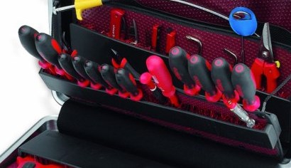 Набор профессионального инструмента CIMCO PERFEKT Elektro-Elektronik 17 5410 оснащен комплектом изолированных прямых и изогнутых отверток, зеркалом для работы в труднодоступных местах, а также гибким захватом. Набор поставляется в удобном и просторном кейсе с несколькими подложками. Металлические петли делают кейс более надежным. Набор предоставляет все необходимое для работ с электрикой: плоскогубцы, бокорезы, нож для снятия изоляции. Удобная рукоятка упрощает транспортировку набора. Вес всего инструмента составляет 7.35 килограмма.