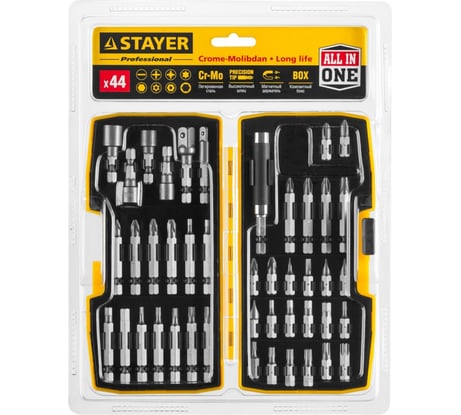 Набор PROFI биты CR-MO, головки и адаптеры, в боксе, 44 предмета STAYER 26135-H441 401 ₽