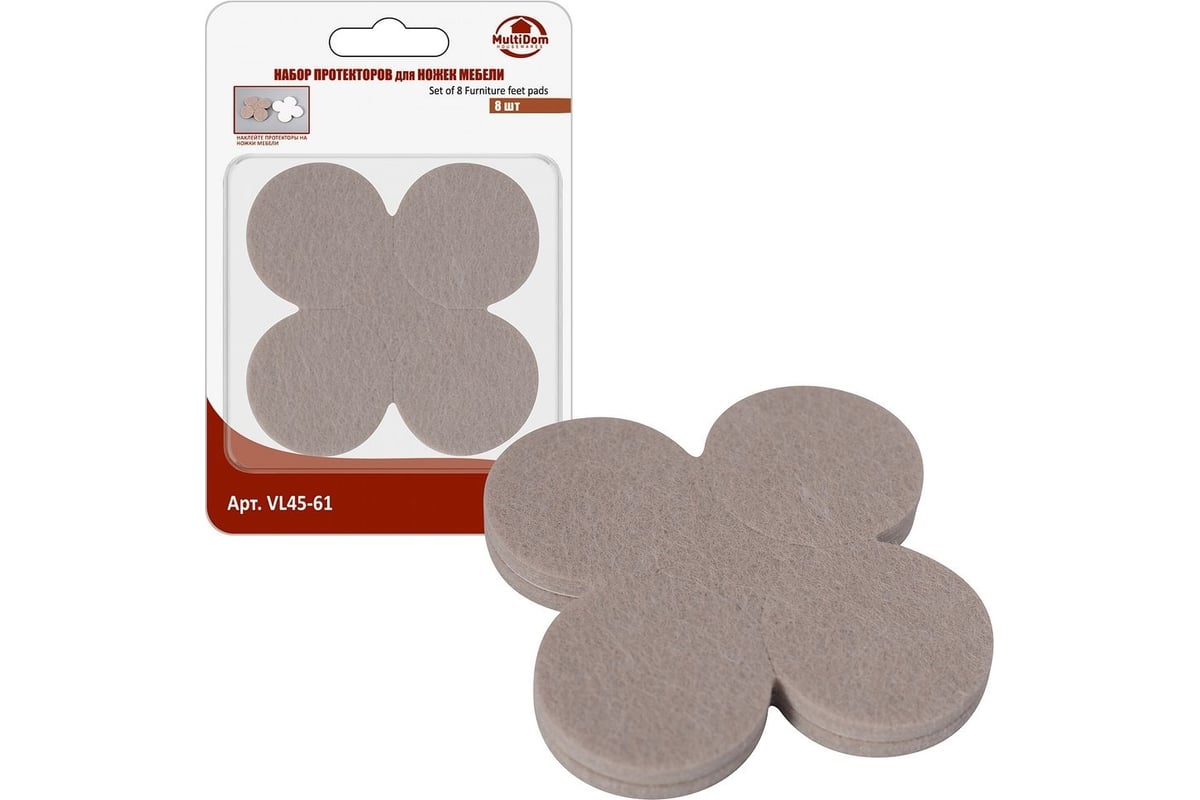 Набор протекторов для ножек мебели МУЛЬТИДОМ диаметр 4 см, 8 шт. VL45-61