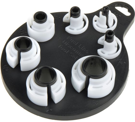 Комплект специализированных пластиковых клиньев-размыкателей для безопасного и корректного отсоединения пластиковых быстроразъемных соединений (фитингов) в топливных магистралях низкого давления и трубках системы кондиционирования автомобиля.