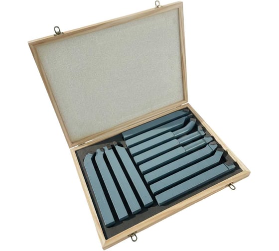 Набор резцов c твердосплавными напайками Т5К10 (державки 25х25мм) включает в себя 12 популярных видов резцов, которые помогут решить задачи любой сложности при обработке металла. Данный тип режущего инструмента относится к классу напайных резцов и предназначен для выполнения универсальных токарных работ по обработке стальных заготовок, включая черновое и получистовое точение, подрезку уступов и торцов, отрезку, продольное точение, расточку и нарезание резьбы.