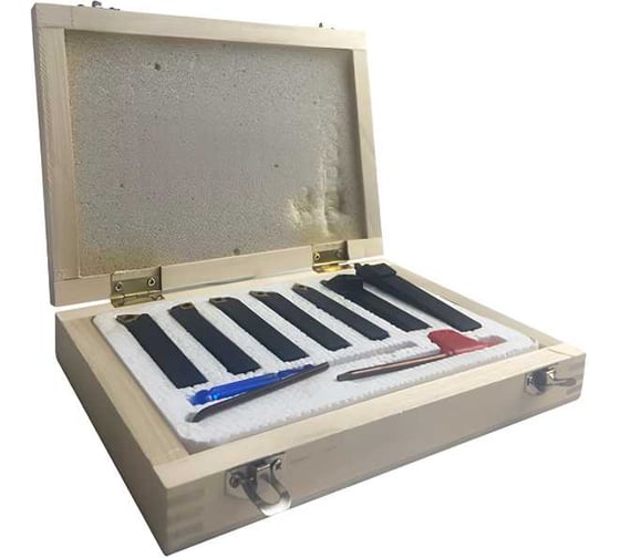 Универсальный набор токарных резцов с механическим креплением сменных твердосплавных пластин предназначен для точения различных металлов на токарных станках. Комплект включает 7 резцов с рабочей частью размером 10 мм