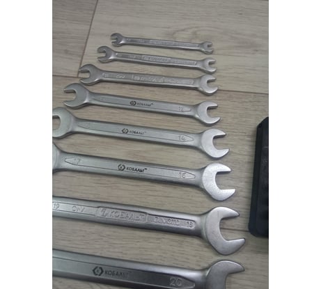 Подложили ключи двух видов: те, которые с кузнечной штамповкой логотипа - чуть толще, чем NoName. Недостачная глубина зева, несимметричная (особенно 10 мм), качество не очень - есть задиры на рабочей поверхности.