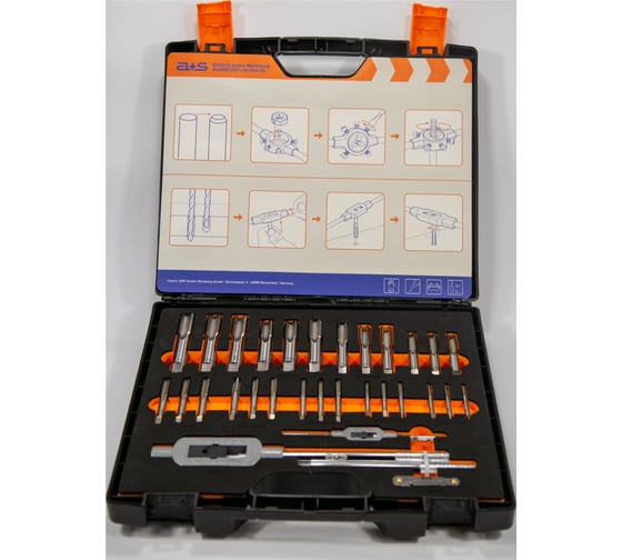 Комплектация:метчики, плашки, вороток для метчиков, плашкодержатель, метчикодержатель, резьбомер, отвертка