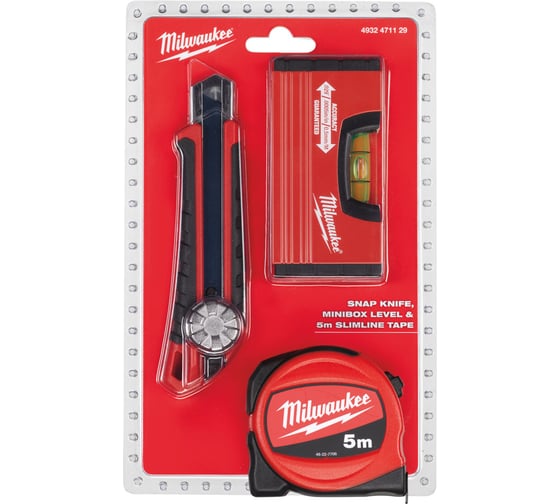 Набор рулетка 5м SLIM + нож 18мм + уровень minbox Milwaukee Z_ПРОМО ДУБЛИН 4932471129