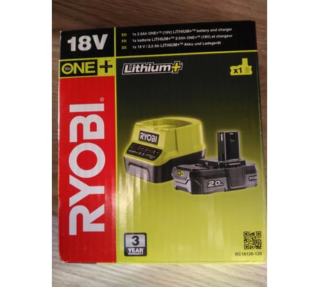 Отзывы о наборе Ryobi ONE+ RC18120-120 5133003368 аккумуляторе (18 В; 2.0 А*ч; Li-Ion) и зарядное устройство RC18120