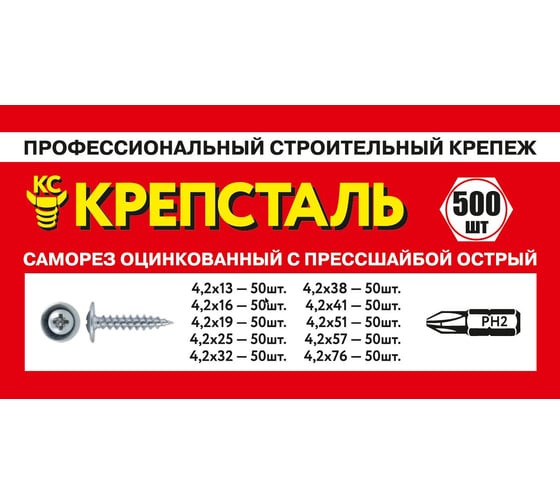 Набор саморезов оцинкованных с прессшайбой острый Крепсталь 500 шт NSP000019