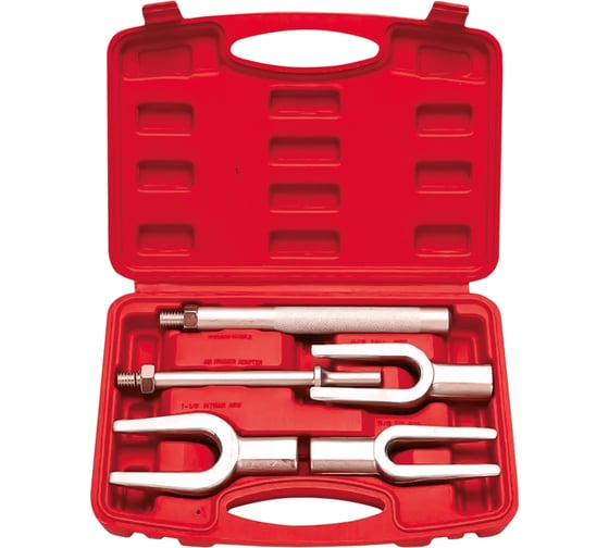 Профессиональный набор съемников шаровых опор и рулевых наконечников типа «вилка» от бренда Forcekraft, состоящий из пяти предметов. Комплект изготовлен из высококачественной инструментальной стали методом ковки с последующей термообработкой, что обеспечивает повышенную прочность, ударную вязкость и износостойкость.