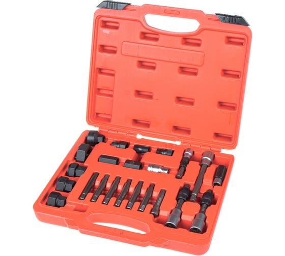 Универсальный набор инструментов для безопасного и удобного демонтажа шкивов с вала ротора генераторов переменного тока, а также стартеров, насосов ГУР и других агрегатов на большинстве автомобилей.