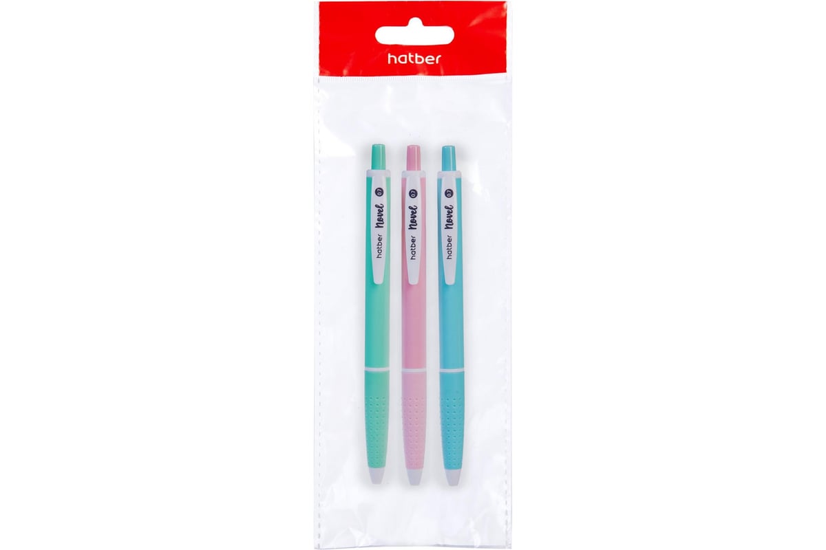 Набор шариковых ручек Hatber автоматическая NovelАссорти Синяя 0.7мм чернила на масляной основе с резиновым грипом 3шт. в пакете , 35шт. 072198
