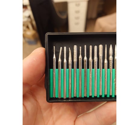 Нормальные шарошки для гравера, хвостовик 3,2 мм. Центровка нормальная, не бьют. К алмазному покрытию, претензий нет. На сколько я понял, этот набор выпускается под разными брендами. У Giganta, стоимость пониже чем у других, а так они все одинаковые.