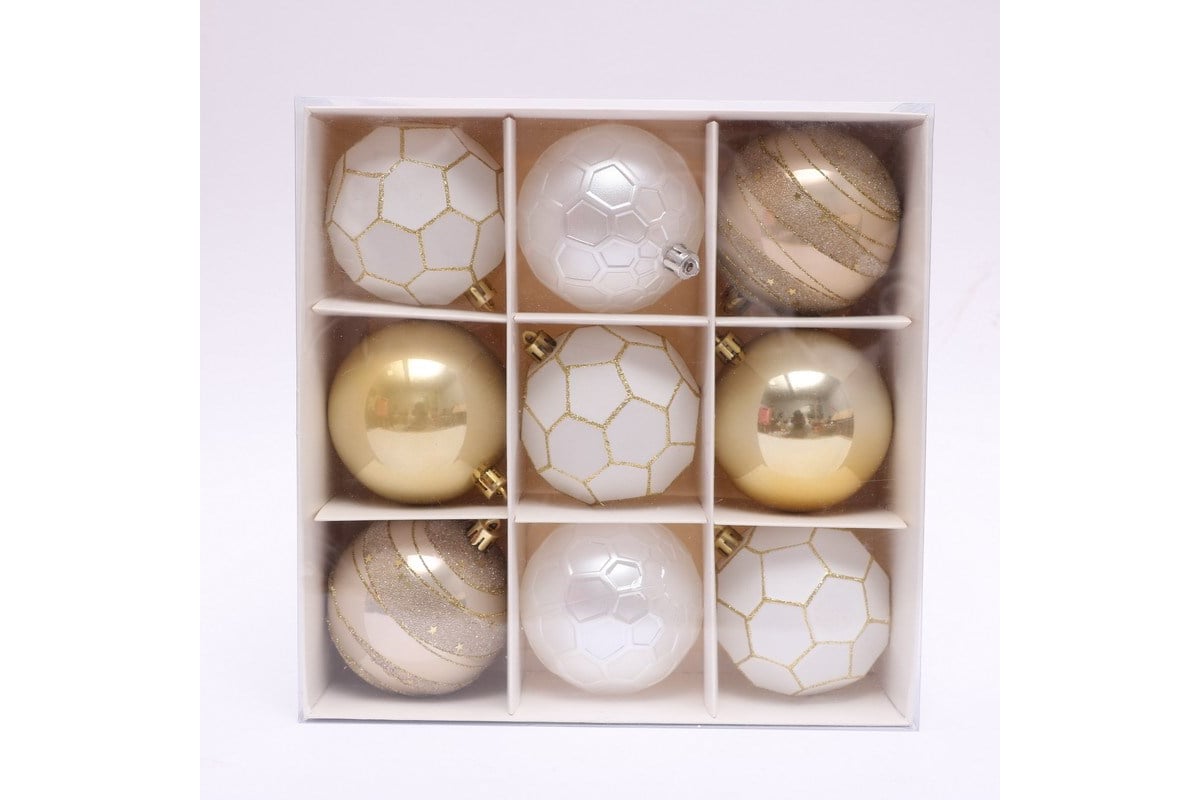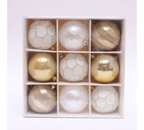 Набор шаров B&H Микс узоров, золото, белый, 9 шт. BH1909-W