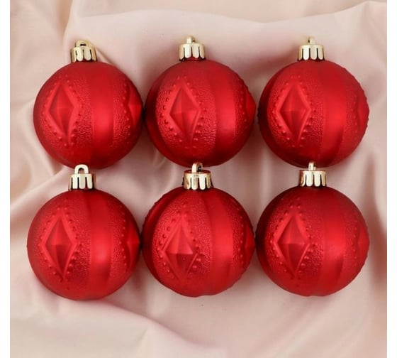 Набор шаров Зимнее волшебство, пластик, d-6 см, 6 шт., Каприччио красный 4941807