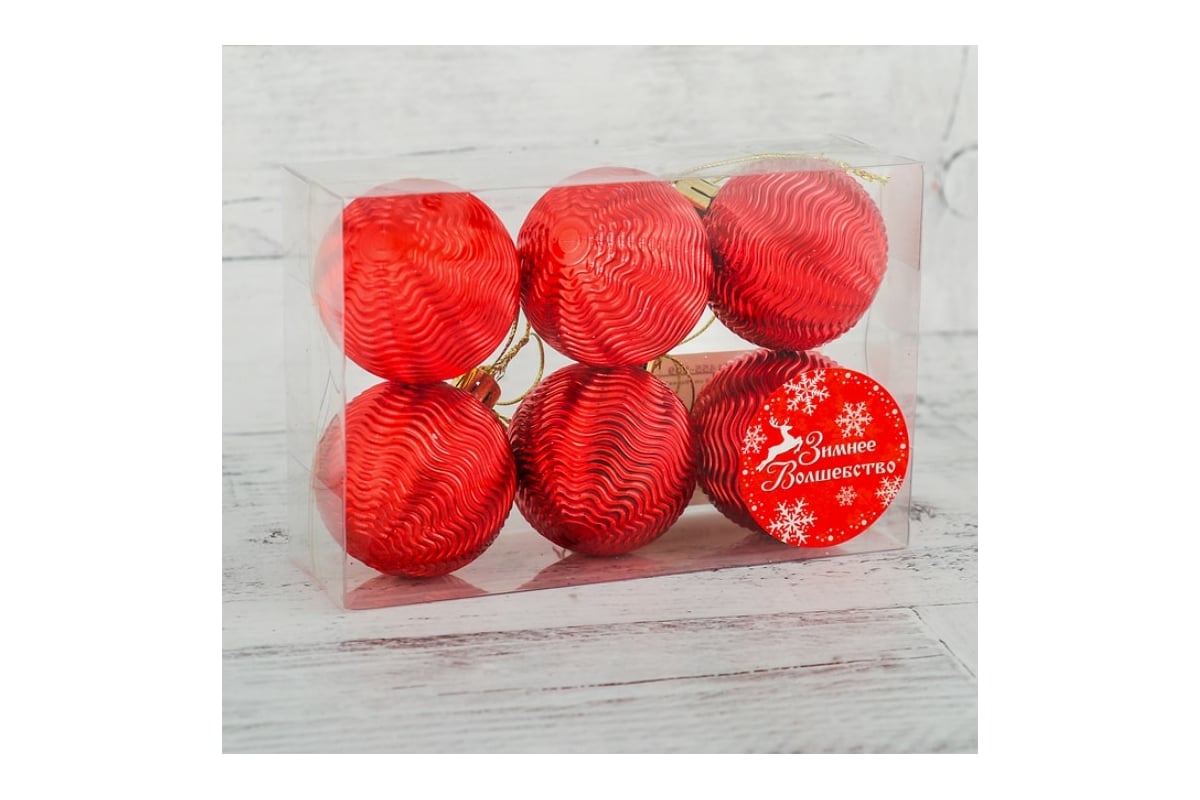 Набор шаров Зимнее волшебство Волна, пластик, d-5 см, красный, 6 шт 3505674
