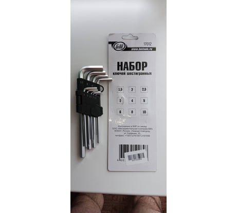 Технические характеристики набора шестигранных ключей БМ 17012