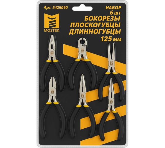 Набор ШГИ MOSTEK 125 мм бокорезы, плоскогубцы, кусачки, длинногубцы прям. и загн., 6 шт. 5423096