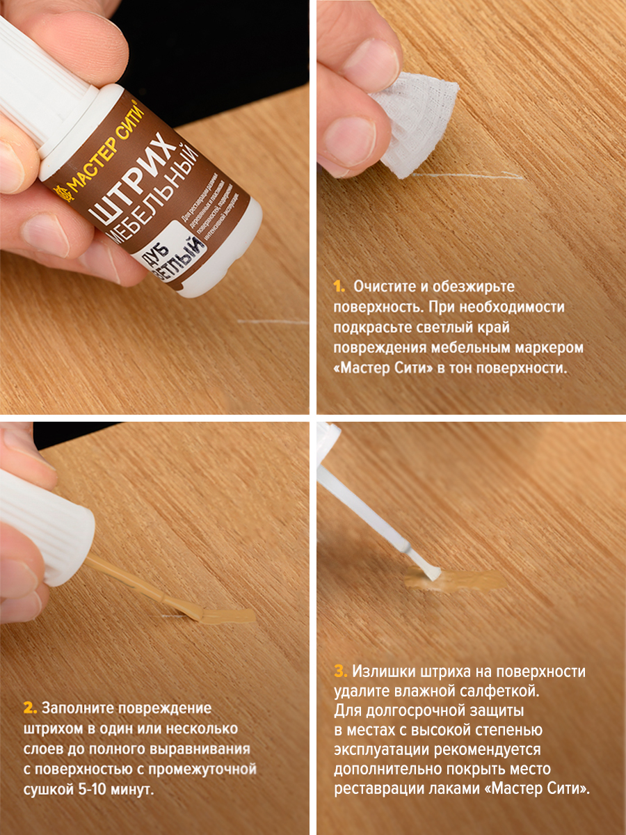 Штрих мебельный в наборе из 10ти цветов от ведущего российского производителя материалов для реставрации Мастер Сити. Применяйте для ремонта сколов, царапин, стыков, трещин. Набор Штрихов "Серые" включает в себя десять актуальных серых оттенков, идеально подходящих для смешивания. Набор идеально подойдет от повреждений на мебели после ее сборки и установки. Поможет скрыть царапины на напольных покрытиях, и убрать недочеты на дверях и окнах после ремонта. С палитрой из 10ти самых популярных серых оттенков подобрать цвет к мебели и напольным покрытиям будет удобнее. Также Штрихи отлично смешиваются между собой. Штрих экологичен, легок в использовании, укрывистый, обладает хорошей адгезией и быстро сохнет. Штрих улучшает внешний вид мебели, скрывает повреждения, сливается с поверхностью, удобно применять в домашнем ремонте. Штрих мебельный для ремонта Мастер Сити полностью готов к применению. Для дополнительной защиты от истирания в местах, подверженных интенсивной эксплуатации, рекомендуем покрыть место реставрации Лаком Мастер Сити. Обращаем внимание, что после высыхания и при нанесении лака цвет штриха меняется. После высыхания штрих темнеет на 2-3 тона, а после нанесения лака, темнеет еще на 2-3 тона. Обязательно сделайте пробное нанесение в незаметном месте. Палитра штриха в трех состояниях (до высыхания, после высыхания, и под лаком) представлена в карточке товара. На лицевом фото изображен цвет штриха после высыхания (без лака). Проверяйте цвет на экранах 2х устройств.