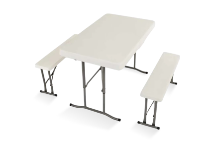 - Пластик HDPE Обеспечивает прочность столешницы и сидений скамеек