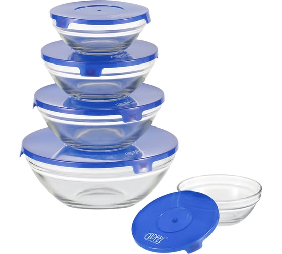 Набор стеклянных мисок для микроволновой печи GIPFEL CAMELIA из 5 с пластмассовыми крышками 6208