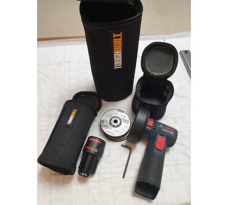 Покупалась для ушм-мини Bosch GKS 12V-76,маленький бокс для расходных дисков,средний для хранения и переноски батарей 12V,для боьшей вероятности что не замкнут контакты. Сразу "оплавил" торчащие нитки,так делаю на всех TOUGHBUILT. В очередной раз балую себя этой продукцией,пользуюсь с 2013 года