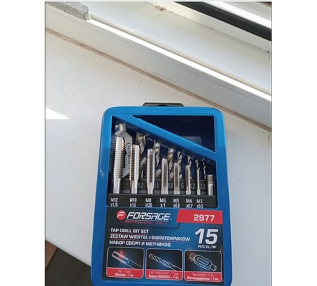Компактный, но очень полезный набор от Forsage, как выручалочка в дороге или для бытового ремонта! 15 предметов: свёрла + метчики под самые ходовые резьбы, всё в одном кейсе. Качество приятно удивило: сталь держит заточку, не греется, не ломается даже в нержавейке.