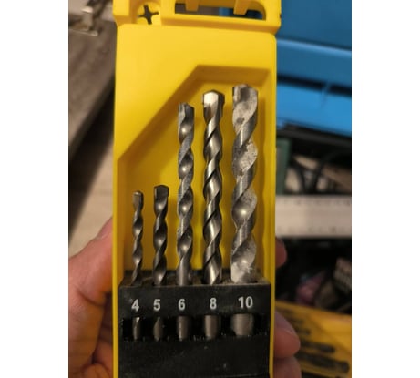 В наборе 5 сверл следующих диаметров: 4 мм; 5 мм; 6 мм; 8 мм; 10 мм.
