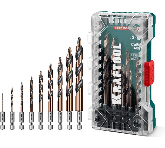 Набор сверл по металлу KRAFTOOL Step Point 10 шт, для винтовертов и шуруповертов 29653-H10